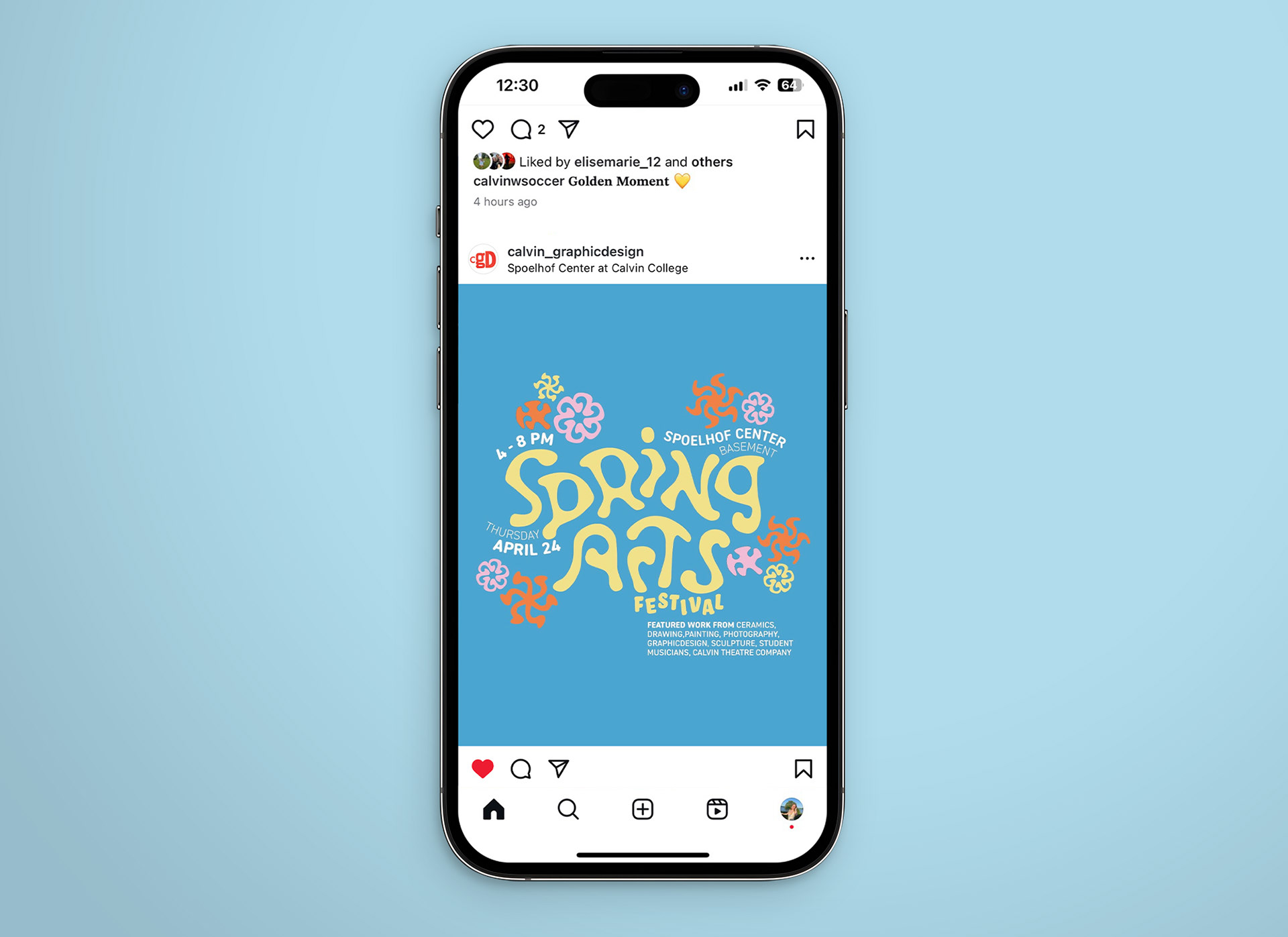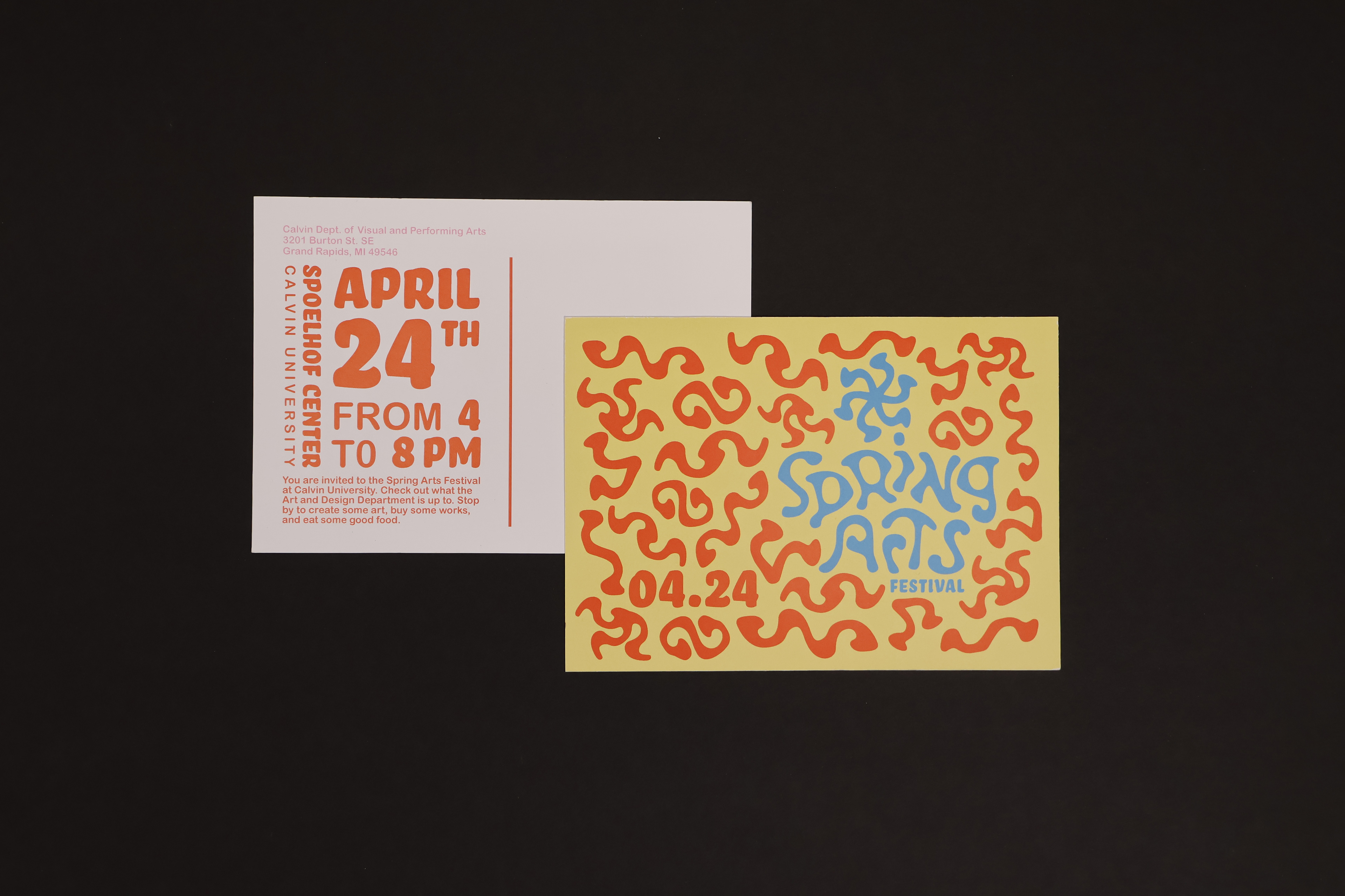 The Spring Arts Festival is Calvin University’s annual celebration of student creativity, revived after a long pause due to Covid. As the primary designer for this event branding project, I worked directly with the Calvin Art Department to create a cohesive visual identity that reintroduced the festival with energy and a renewed sense of community. Over 500 people attended the event, and the branding helped reestablish the festival as a vibrant, playful tradition within the campus arts community.