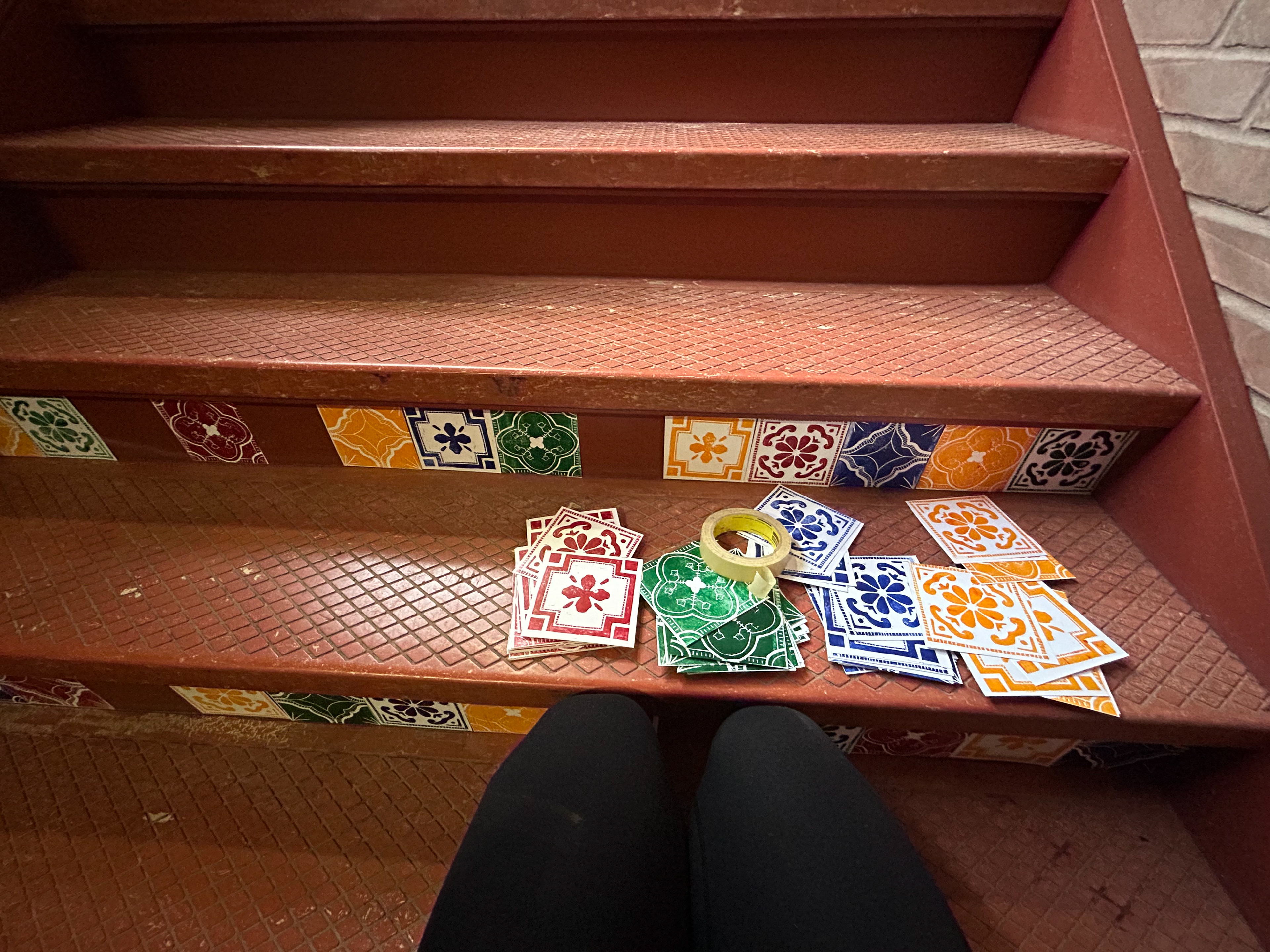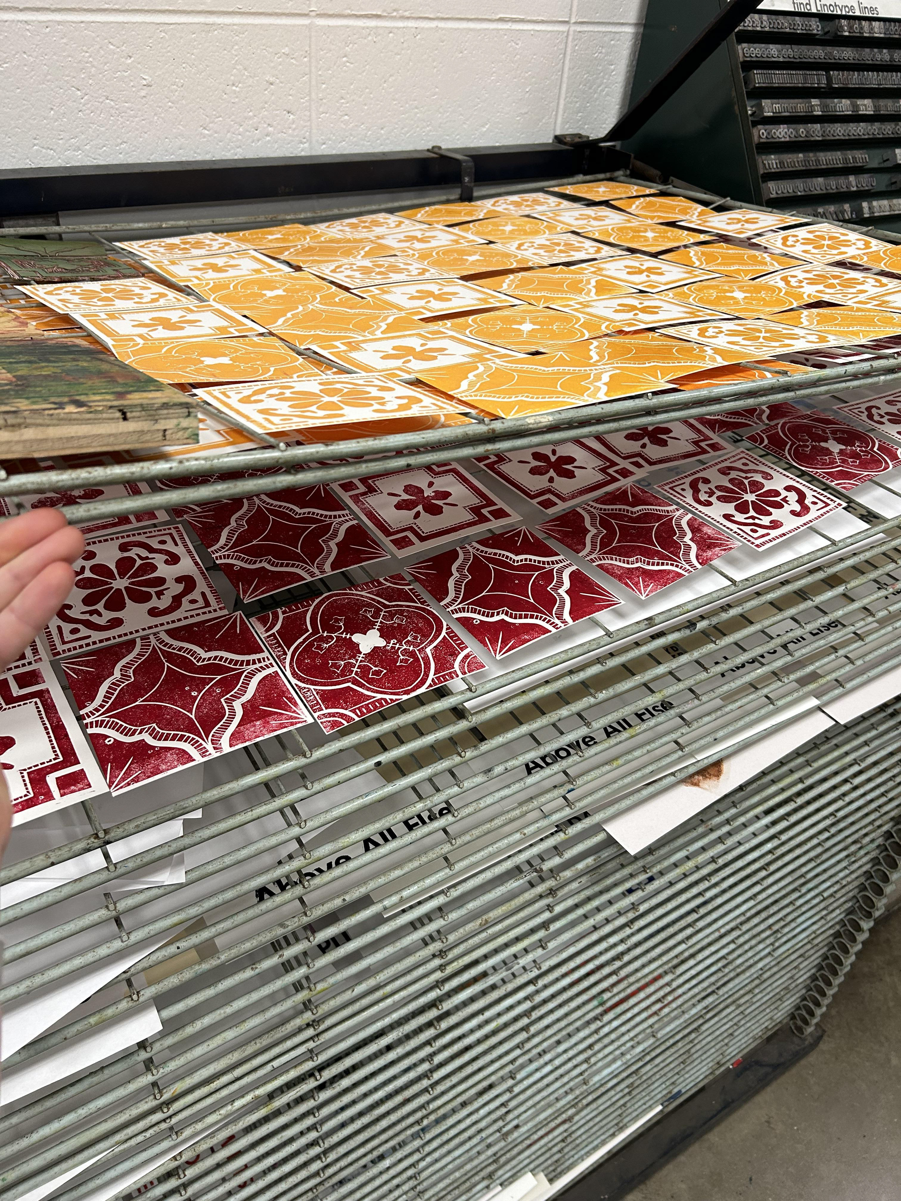 Tile Installation of over 300 hand carved linoleum printed tiles